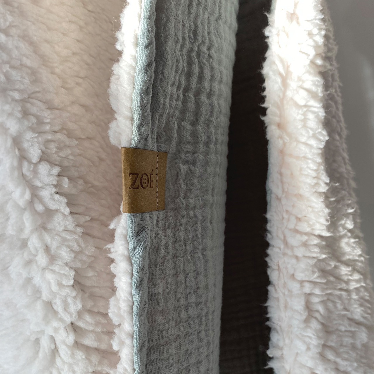 Puha muszlin + meleg sherpa kombináció – könnyű, mégis ölelő melegséget ad.