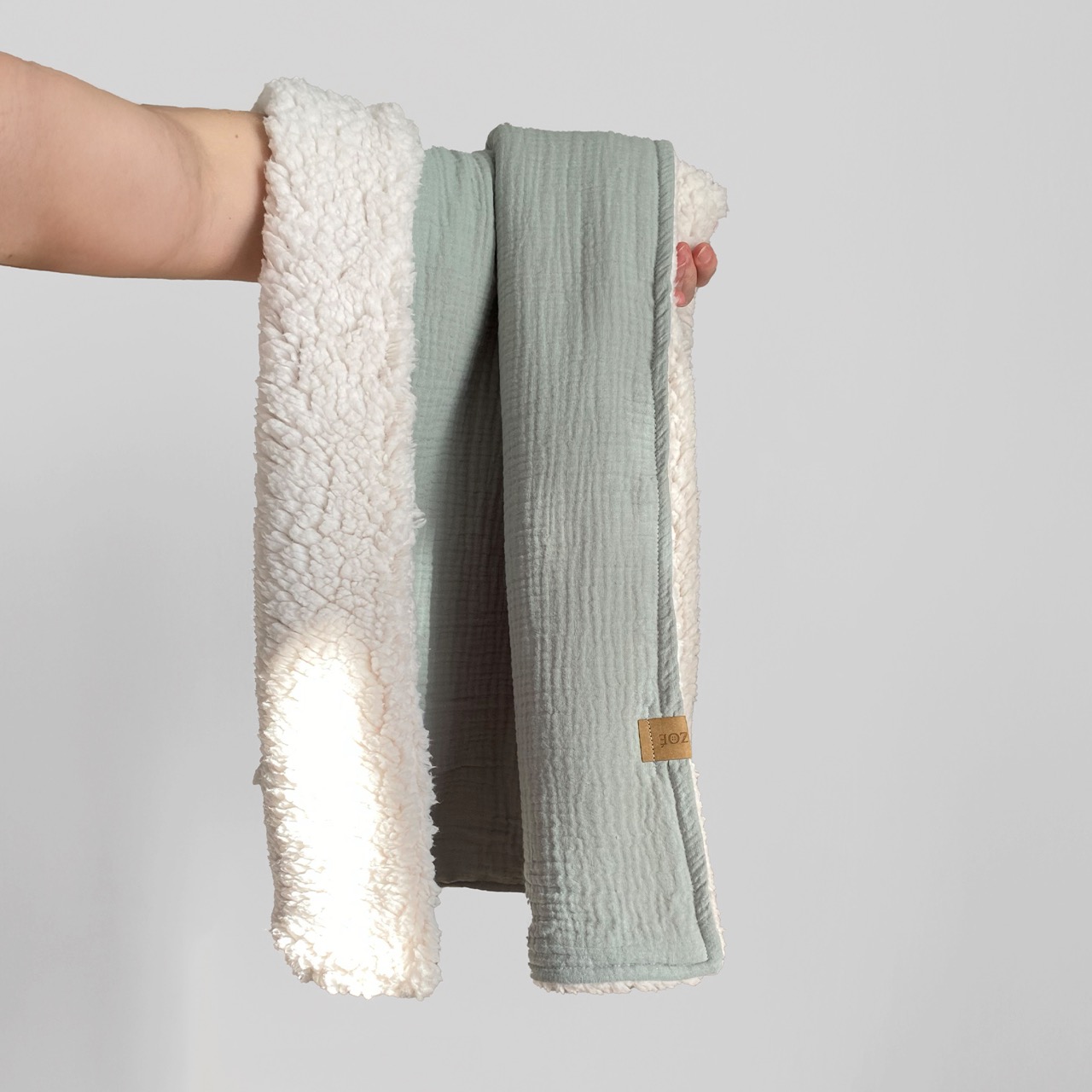 Egyedileg, kézzel készült muszlin–sherpa babatakaró, 100% bababarát Oeko-Tex textilből. Puha, bélés nélküli kialakításának köszönhetően ideális babakocsiba és a fűtött otthon melegébe is. Minden darabot szeretettel, gondos odafigyeléssel készítünk, így igazán különleges kísérője lesz kisbabád mindennapjainak. Ez a takaró lesz az, amit még 3-4 évesen is magával visz mindenhova ❤️